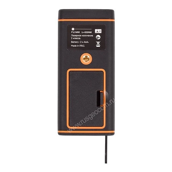 Работает лазерная рулетка RGK D80 от двух батареек типа ААА на 1.5. Одного заряда элементов питания хватает на 8000 измерений. Продлить срок службы аккумуляторов позволяет функция автоматического отключения прибора после 2,5 минут простоя.
