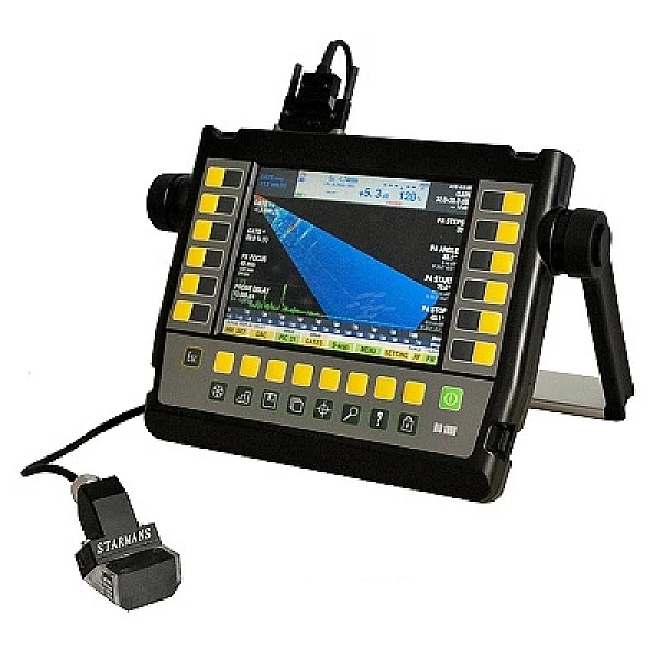 При помощи уже встроенного ПО можно с легкостью изменять угол наклона, фокуса, фокальной дистанции и других разнообразных характеристик. Это значительно упрощает и делает легче процесс сканирования и увеличивает эффективность обнаружения дефектов. Это первоклассный, высокоскоростной дефектоскоп отличнейшего качества, который совмещает в себе и общепринятый метод обнаружения различных дефектов и самые новые технологии контроля: контроль может быть осуществлён при помощи фазированных решёток, ЭМА (бесконтактный метод) и TOFD, имеется удобнейшая возможность подключения идентичных преобразователей, сканеров.