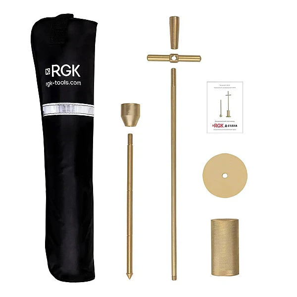 Ключевое отличие плотномера динамического RGK Д-51А от базовой версии - наличие в комплекте штампа диаметром 100 мм, который необходим для замеров на влажных глинистых грунтах, и для реализации метода двойного зондирования, который применяется при контроле уплотнения без проведения измерения влажности. В этом случае глинистый грунт испытывают в двух состояниях: исходном и после дополнительного уплотнения.