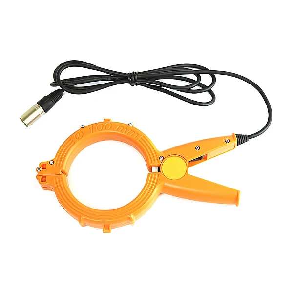• Обхватить до смыкания полуколец индукционными клещами кабель.
