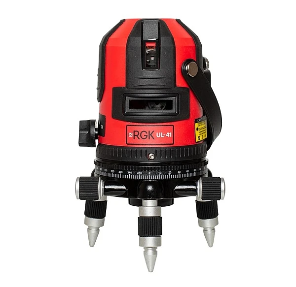 RGK UL-41 строит четыре вертикальных плоскости и горизонтальную с развёрткой 110°, благодаря чему устройство может охватить все стены помещения с одной позиции. Поворотный корпус UL-41 с двумя винтами наводки снабжен горизонтальным лимбом и позволяет аккуратно и точно перенести плоскость на нужную поверхность. Лазер UL-41 обеспечивает чёткую линию на любой поверхности на дистанции до 20 метров в помещении, а с использованием приемника лазерного излучения дистанция возрастает до 50 метров с возможностью использования прибора при ярком освещении. Точность построения линии составляет 0,2 мм на 1 м.