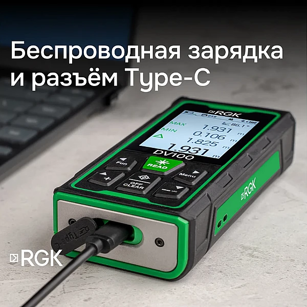 Дальномер RGK DV100 оснащен мощным лазером, который позволяет измерять расстояния на удалении до 100 метров с двухмиллиметровой точностью, что позволяет работать не только в помещениях, но и на улице. Отличительной особенностью дальномера RGK DV100 является наличие яркого лазерного маркера, облегчающего наведение на цель.