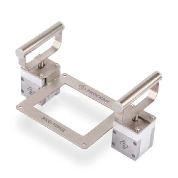 Магнитные держатели ЭКО-10МД используются для крепления цифрового плоскопанельного детектора Экоскан 10 в защитном кожухе ЭКО-10У на цилиндрических и плоских объектах контроля из магнитных металлов. Пространственное положение объектов может быть любым. Минимальный диаметр цилиндрических объектов контроля составляет 152 мм.