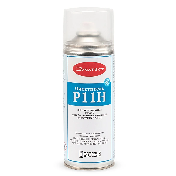 Согласно ГОСТ Р ИСО 3452-2 очиститель Элитест Р11Н относится к методу C (на основе растворителя), классу 2 (негалогенизированный).