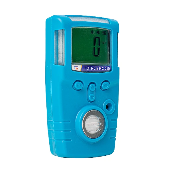 ТОП-СЕНС 210 (HCN) используется для контроля концентрации синильной кислоты (цианистого водорода) в воздушной среде рабочих и других помещений в диапазоне от 0 до 100 ppm.