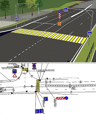 Горизонтальная разметка (точечная, линейная и площадная) так же, как и остальные элементы ТСОДД проектируется по активной трассе как в ручном, так и в автоматизированном режиме.