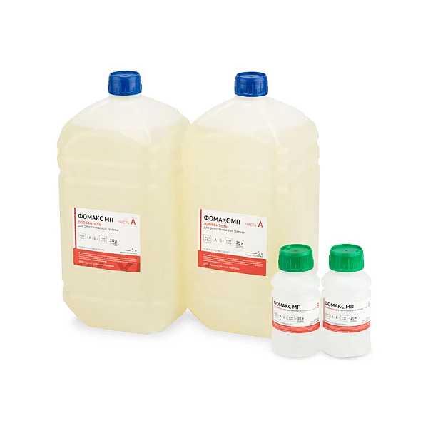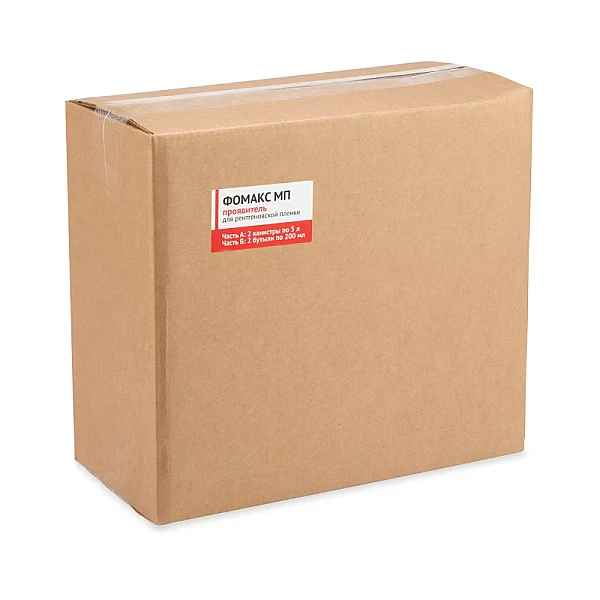 В один комплект проявителя ФОМАКС МП входит 2 канистры части А и 2 бутыли части Б. Такая форма поставки позволяет за раз приготовить как 40 литров рабочего раствора, так и разделить приготовление на 2 раза (по 20 л рабочего раствора). Для приготовления 20 л рабочего раствора следует влить 5 л компонента А в 14 л воды с температурой +28...+30 °С и тщательно перемешать, затем добавить 200 мл компонента Б и снова тщательно перемешать. Далее вливать воду до совокупного объёма 20 л, тщательно перемешивая полученный раствор.