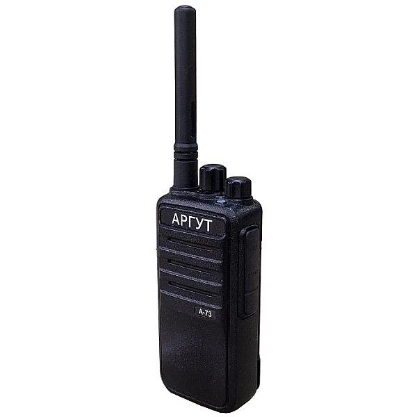 Цифровая радиостанция полупрофессионального класса. Работает в цифровом или в аналоговом режиме. Режим автоматического сканирования удобен при использовании Аргут А-73 в радиосети, где радиоретрансляторы работают на различных частотах. Цифровой канал защищён от помех, прослушивания и вмешательства в переговоры сторонних абонентов. В комплекте дополнительно малогабаритная антенна для скрытого ношения радиостанции.