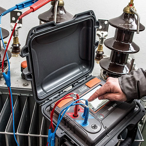ТМС-650 – профессиональный, цифровой измеритель активного/индуктивного сопротивления объектов энергетической отрасли, железной дороги и различных производственных предприятий. Широкий спектр применения позволяет проводить измерения сопротивления сварных и болтовых соединений, кабельных линий и проводов, обмоток двигателей и силовых трансформаторов, в том числе индукционных трансформаторов с аморфным магнитопроводом, а также и других объектов, независимо от характера их сопротивления. Функции автоматического расчёта, как приведённого сопротивления к температуре сравнения, так и температуры обмоток электрооборудования, подвергшихся нагреву, упрощают анализ состояния данной электроустановки. Использование 4-х проводной схемы (метод Кельвина) измерения позволяет избежать ошибок, вызванных сопротивлением проводов, и получить наиболее точный результат.