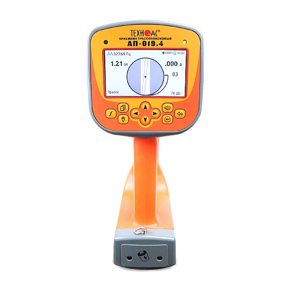 В составе комплекта приемник в виде моноблока с цветным ЖК дисплеем, на который выводится изображение трассы и в автоматическом режиме происходит расчет глубины залегания коммуникации до 30 м, а также величины тока в линии.