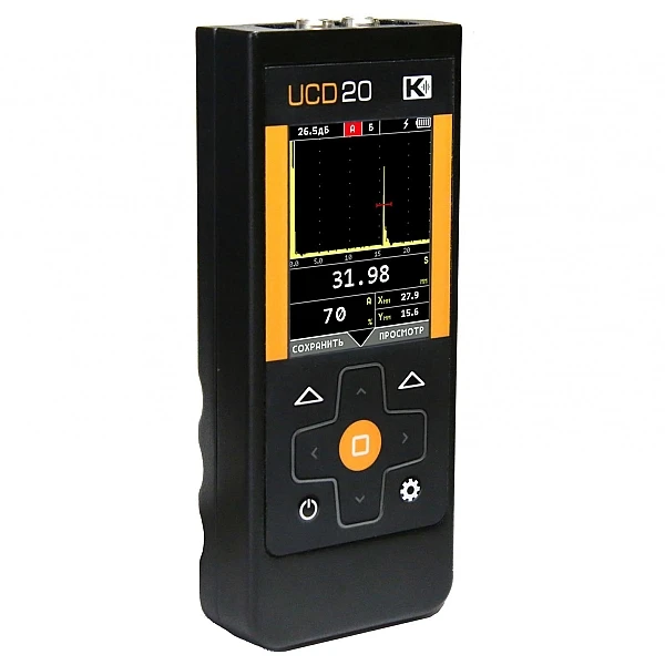 Новый, сверх портативный ультразвуковой дефектоскоп УСД-20 с массой менее 250 гр. представляет собой простой в настройке и эксплуатации инструмент для контроля в труднодоступных местах и в прочих условиях, когда габариты и вес инструмента являются критичными. Несмотря на малые размеры, обладает хорошим быстродействием, современным морозостойким TFT экраном с тремя цветовыми схемами (в том числе для работы при ярком солнечном свете) и всеми основными функциями современного дефектоскопа.