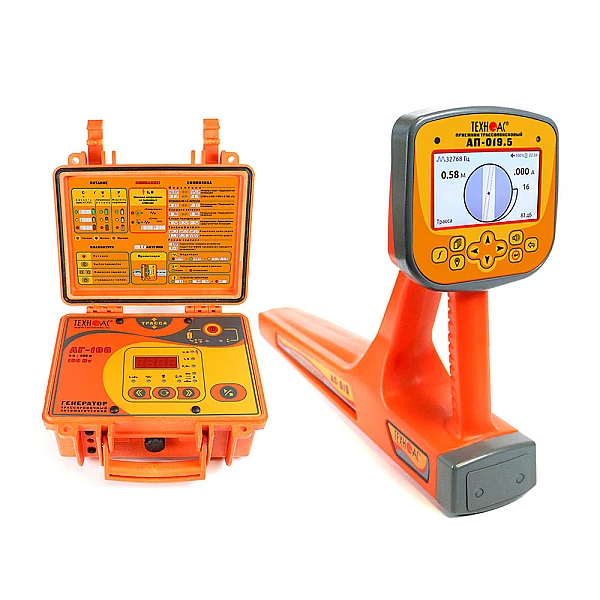 Комплект оснащен новейшим компактным автономным генератором АГ-108 со встроенными элементами питания, дисплеем и встроенной индукционной антенной, для трассировки коммуникации бесконтактным способом.