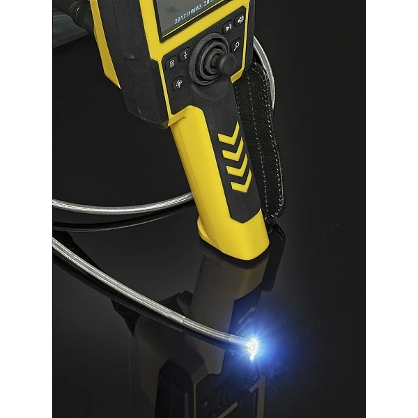 Trotec VSC206Зонд VSC206, сгибаемый во все стороны, может плавно управляться с помощью джойстика, а его головка камеры с титановым покрытием обеспечивает идеальный панорамный вид на зону контроля. Головка камеры плавно изгибается во всех направлениях. Многослойная конструкция из нержавеющей стали и полиуретана на гибкой стальной спирали обеспечивает максимальный диапазон движения при одновременно высокой прочности на скручивание. 6 белых светодиодов с регулируемой яркостью обеспечивают четкое и детальное изображение, которое может отображаться на VGA-дисплее VSC206 и сохраняться для документирования в виде видео или отдельного изображения на SD-карте.