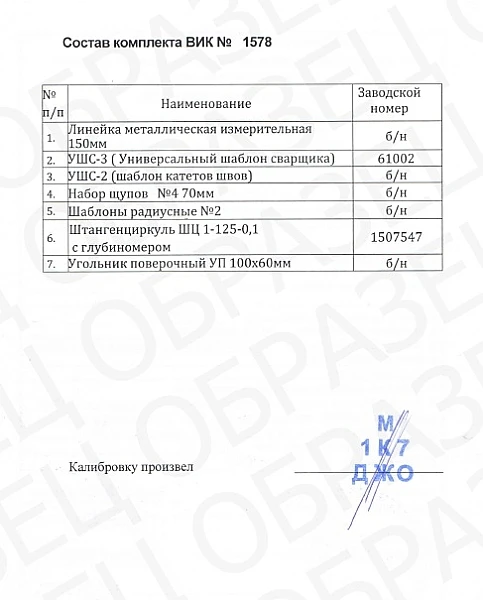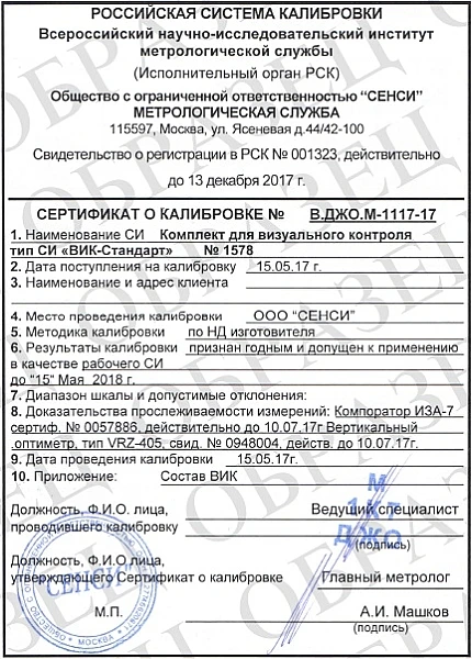 Комплект ВИК Стандарт с сертификатом калибровки